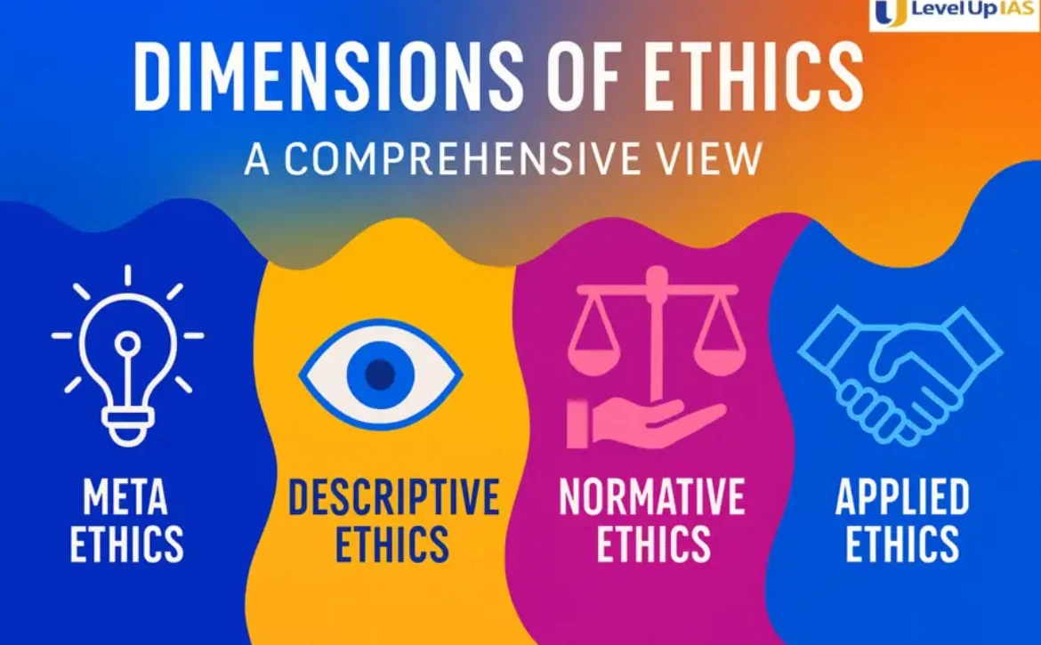 Ethics as a field of study is not confined to philosophy alone. It intersects with political science, public administration, military studies, environmental sciences, organizational behavior, and more. Broadly, ethics today can be understood through four major dimensions: