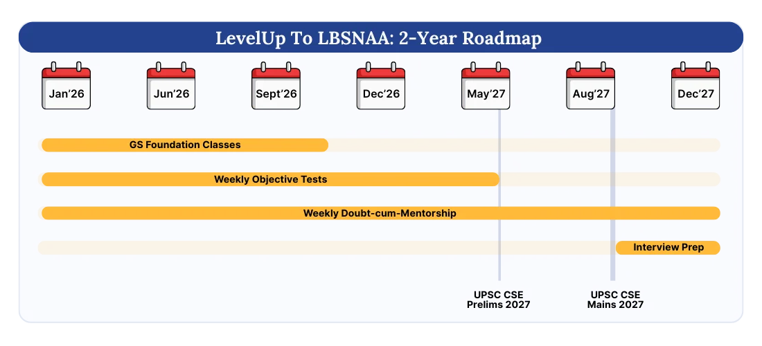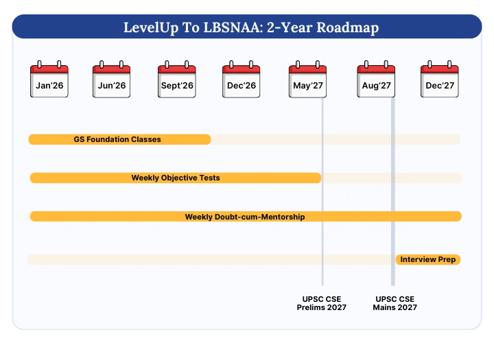 Understand how your two-year UPSC CSE 2027 journey will be planned from concept clarity to answer writing, mentorship to testing. Get a personalised roadmap built around your strengths, schedule, and goals.