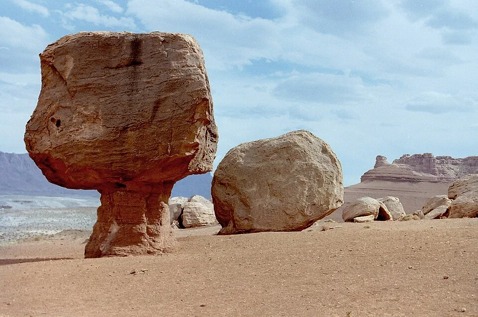 Desert landforms such as mushroom rocks, yardangs, and sand dunes demonstrate how climatic conditions influence geomorphic processes. Wind-shaped landscapes indicate the importance of atmospheric processes in landform development.