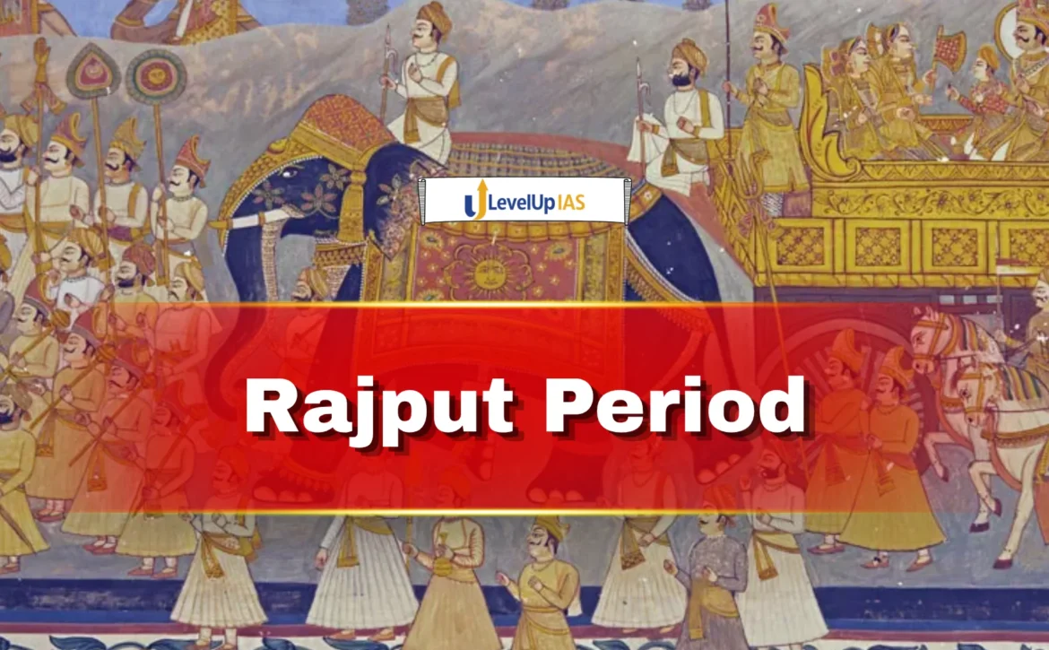 The Rajput Period refers to the phase in early medieval Indian history (approximately 6th to 12th century CE) when numerous Rajput clans emerged as dominant political powers across northern, western, and central India. The term “Rajput” is derived from Rajaputra, meaning “son of a king”, indicating their claim to royal lineage and warrior status. This period is marked by feudal polity, valor-centric culture, regional kingdoms, and continuous military conflicts, especially against invading forces.