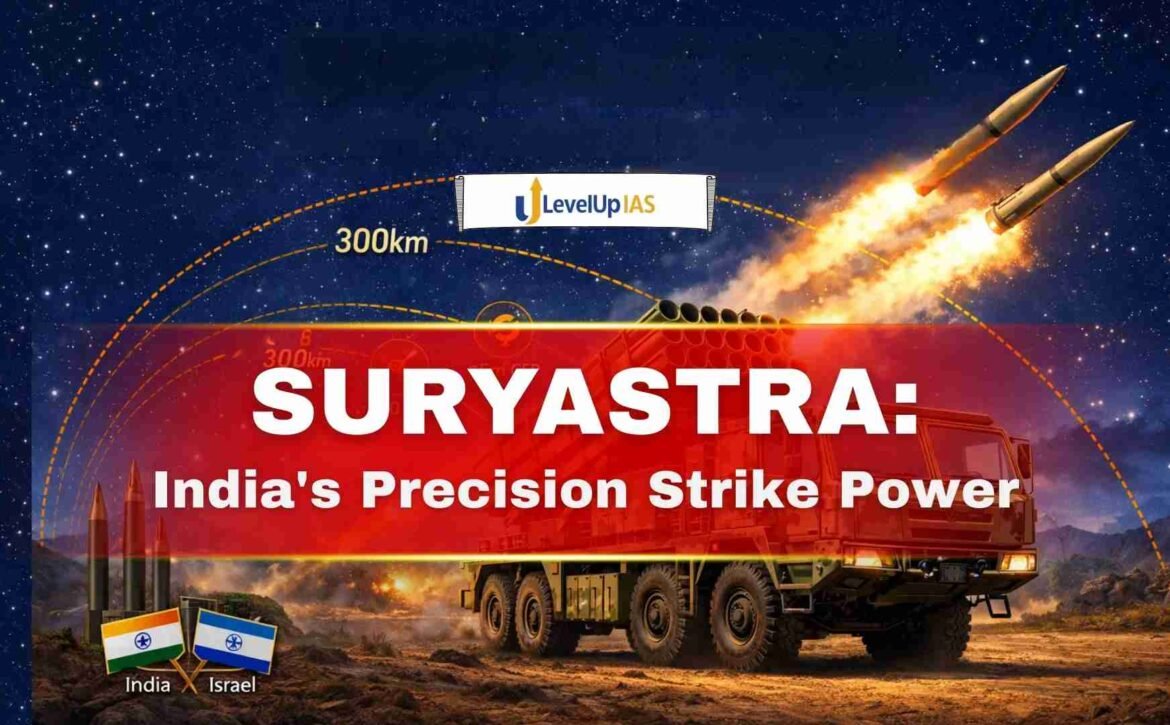 Suryastra is designed as an advanced long-range precision strike system capable of delivering surface-to-surface attacks against high-value targets. Its induction into the Indian Army significantly enhances India’s conventional deterrence and battlefield firepower.