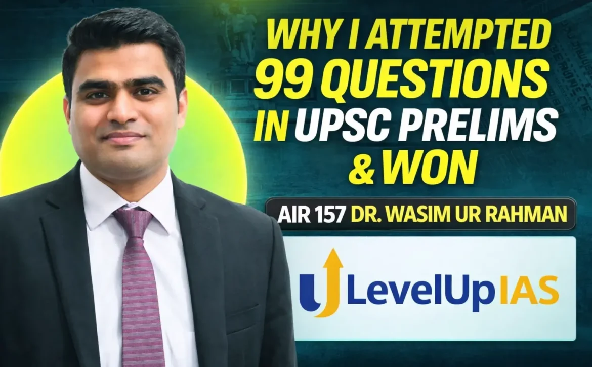 In the LevelUp IAS podcast, Dr. Wasim Ur Rahman shares his UPSC preparation journey, highlighting the importance of discipline, clarity of strategy, and self-belief. His success was not based on shortcuts but on a well-planned and consistent approach. One of the most striking aspects of his preparation was his decision to attempt 99 questions in the Prelims, which became a defining factor in his success.